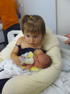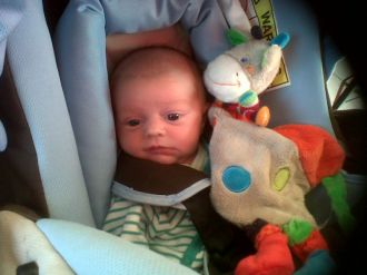 6 mois Juste un petit passage, après de longs mois d'absence. Lorik aura 6 mois demain, déjà une demi année de pur bonheur. Message déposé le 16.02.2012 à 21:27 - Commentaires (5)Lorik est le bébé parfait, il mange bien, dort bien, souri et rigole à longueur de journée, on ne l'entend jamais c'est bien simple.. Il est génial ! Moi je dis qu'il y a forcément un "vice caché" lol et qu'on y paiera dans quelque temps... Allez une petite photo ça fait longtemps : Dernier article Comme le titre l'indique je vais clôturer le blog ici. Plus assez de temps pour mettre à jour, et puis la grossesse c'est fini, il faut bien se résoudre à dire aurevoir à un moment ou à un autre, et ce moment est venu. Message déposé le 05.10.2011 à 11:49 - Commentaires (4)Notre petit Lorik nous comble de bonheur depuis maintenant 1 mois et demi. Nous avons 2 magnifiques enfants, nous sommes les plus heureux, la vie nous a gâté avec en plus le choix du roi ! Pour la suite des évènements, je vais rester à la maison pour cocooner mes bébés encore quelques mois. Ma reprise du travail est fixée au 26 mars 2012. Je passe donc l'hiver au chaud c'est parfait. Je reprend à 80 % soit 28 heures par semaines. Je ne travaillerai pas les mercredi pour mon plus grand bonheur, et pourrai profiter de mes enfants ce jour là durant 3 ans ! Je remercie les copinautes pour tous les messages que vous avez laissé ici, merci de nous avoir suivi. Je ne vous dis pas à bientôt sur blog grossesse, puisqu'il n'y aura pas de bébé 3. Mais je vous dis à bientôt en privé, ou sur facebook, pour celles qui le souhaitent je vous donne mon adresse mail ou vous envoi une invit' FB... Continuez à faire vivre blog grossesse avec tous vos gros bidons, à nous émerveiller de vos beaux bébés, car certes, j'arrête le blog, mais je continuerai de visiter les vôtres.. Gros bisous de nous 4 ! ![]() News en vrac Alors quoi de neuf chez notre petit trésor ??? Message déposé le 28.09.2011 à 20:55 - Commentaires (5)Et bien tout d'abord, nous avons augmenté les biberons à 150 ml comme je le disais dans le précédent post, il les boit tous très bien, il n'en prend maintenant plus que 5 par jour. Il avait recommencé à réclamer toutes les 4 heures (nuit y compris) et là il espace de 7 heures la nuit (cool !). Je pense qu'il est sur la bonne voie pour faire bientôt de bonnes nuits... Mais ne crions pas victoire trop vite, on a vu la dernière fois, il a régressé ensuite. En ce moment ça donne environ 22h- 5h ce qui est plutôt pas mal. Sinon il est toujours adorable, fait énormément de sourires lorsqu'on lui parle. Il gazouille aussi et nous répond lorsqu'on lui demande de faire areuh LOLLL. L'autre jour il s'est retourné du ventre au dos, j'avoue avoir halluciné qu'il fasse ça si petit, mais il était en train de pleurer et était tellement énervé qu'il y est parvenu... Voilà les prouesses loll ! Sinon on s'est aperçu qu'il préférait dormir sur le ventre avec le cul pointé en l'air ^^. La nuit je le met sur le côté et en sieste sur le ventre. Il dort trop bien comme ça. Sur le dos c'est même pas la peine d'y penser ! Malgré les recommandations des pédiatres, je préfère que mon fils dorme bien plutôt que de le forcer à adopter une position qui ne lui est pas confortable. Autrement il refuse toujours la tétine mais trouve de mieux en mieux ses doigts, on verra s'il en a beaucoup besoin ou pas... Voilà voilà , j'ai fais le tour. Dernière chose, on l'aime troooooooop notre petit mec, j'avoue être totalement gaga de ses mimiques et de lui, tout simplement. Il me fait fondre... Photo de nous 3 à la mater (J+3). La photographe est venue hier à la maison et on a craqué sur ce cadre avec cette photo et un autre cliché. ![]() 1 an de plus Hier j'ai soufflé ma 28ème bougie ! Et quoi de plus beau comme cadeau cette année que mon petit homme ! Message déposé le 25.09.2011 à 16:46 - Commentaires (3)De plus, il me régale de ses sourires depuis déjà plusieurs jours. Du bonheur en barre !!!! ![]() Visite du 1er mois Mon bébinou a eu 1 mois samedi, le temps est passé si vite j'ai du mal à réaliser qu'un mois entier s'est déjà écoulé... Mais nous profitons de chaque moment alors pas de nostalgie, savourons ce bonheur ! Message déposé le 20.09.2011 à 20:44 - Commentaires (3)Aujourd'hui nous avions rdv chez le médecin pour la visite du 1er mois et comme nous nous en doutions tout va très bien pour Lorik. Il boit ce qu'il faut, c'est à dire 6 biberons par jour de 135 ml (nous sommes passés à 150 ml aujourd'hui et il prend tout) et tout va très bien pour lui, pas de colique à déplorer, aucun souci particulier. Mensurations : 53 cm (+3 cm) pour 4,030 kg (+1,100 kg) et 38 cm de périmètre cranien (+ 2,5 cm). Nous avions rdv à 9h30 ce matin et malgré que c'était l'heure du bib il n'a pas pleuré durant la consultation, il a été bien docile, pas même un petit pipi sur la table pour protester RIEN ! La doctoresse nous a dit que c'était un très beau bébé, on le sait déjà ça ! Et oui objectivement parlant, nous le trouvons juste le plus beau de l'univers notre petit garçon... ^^ En bonne voie.. Deux choses en bonne voie : Message déposé le 13.09.2011 à 10:44 - Commentaires (0)- Les nuits : Sauf petits ratages, Lorik arrive à dormir 8h consécutives la nuit. Le hic c'est qu'il la commence un peu tôt ce qui fait que nous avons encore un bib en fin de nuit vers 4h ou 5h. On essaie progressivement de le décaler pour l'amener à faire 22h - 6h. En tout cas, à même pas un mois, c'est déjà génial ce qu'il fait. - Les kilos de maman : Ca descend tout seul sur la balance !!!! Pas besoin de régime pour l'instant le rythme de vie est tel, que les kilos s'envolent comme par magie. Avant hier soir, 62,7 kg soit plus qu'environ 8 kg à perdre youhouuuuuu !!!! ![]() No tutu No pouce ! Ben voilà tout est dit. Lorik refuse depuis le début de prendre la tutu et ne tro