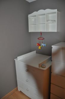 Prochaine étape, enlever sa table à langer et la remplacer par une commode de grande. Ceci dans quelques semaines, lorsqu'on l'aura acheté ^^