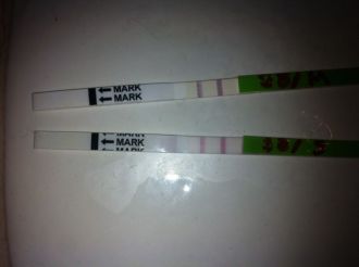 le lendemain ne tenant pas car je continuer a me sentir bizarre...je fais le test et la une ovulation ! wouah ! et pas legere le test plus foncé ça serait difficile !